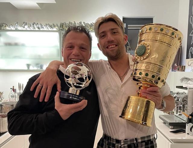 颜值真高!胡梅尔斯带女友和穆勒一起看比赛