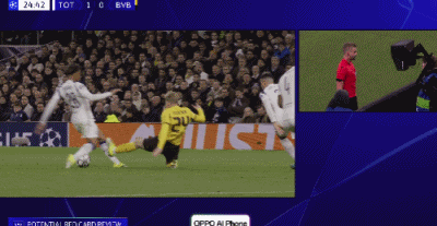 第37分钟,索兰克禁区幸运脚后跟破门,热刺2-0多特