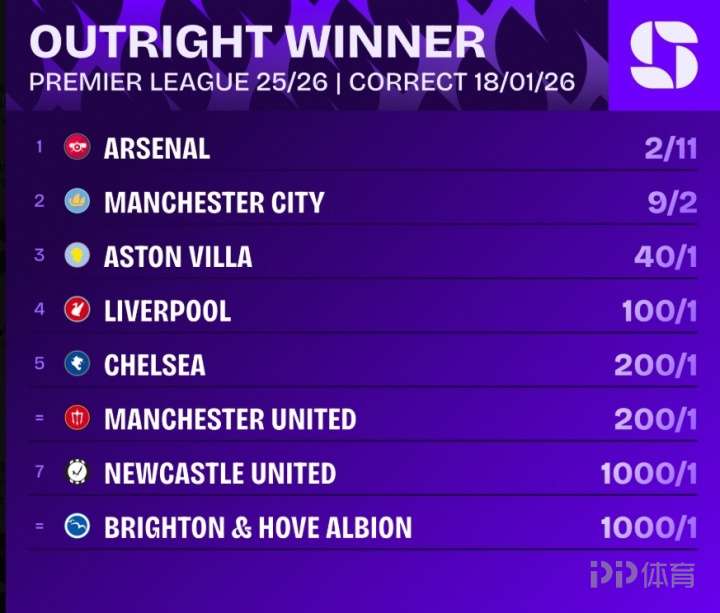 本轮过后阿森纳虽然打平却扩大了领先优势。阿森纳目前以7分优势领跑英超,依然是夺冠的最大热门。