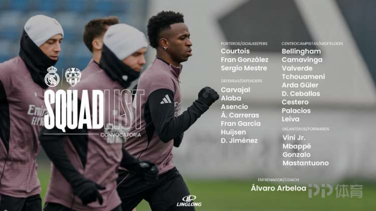皇马公布战莱万特大名单:姆巴佩、维尼修斯领衔 罗德里戈缺席
